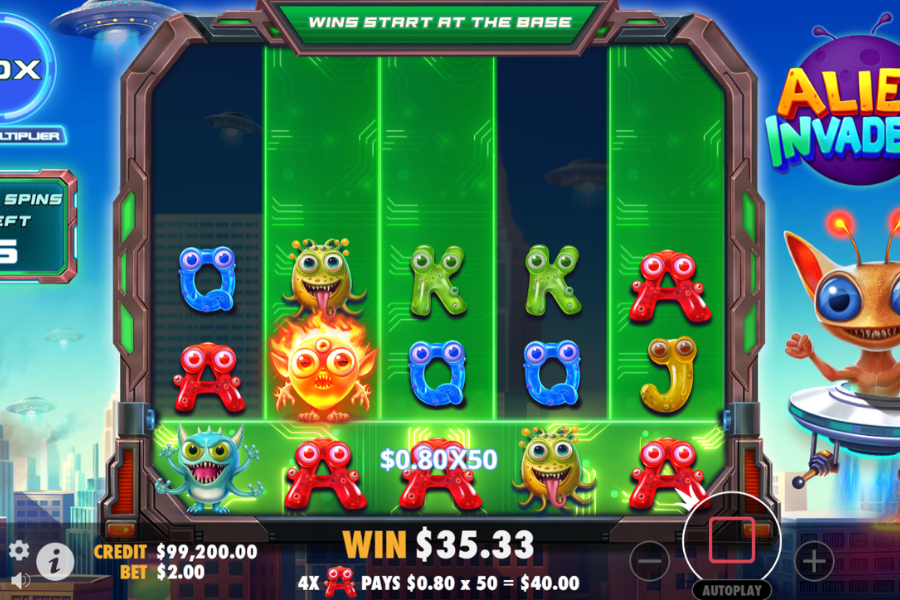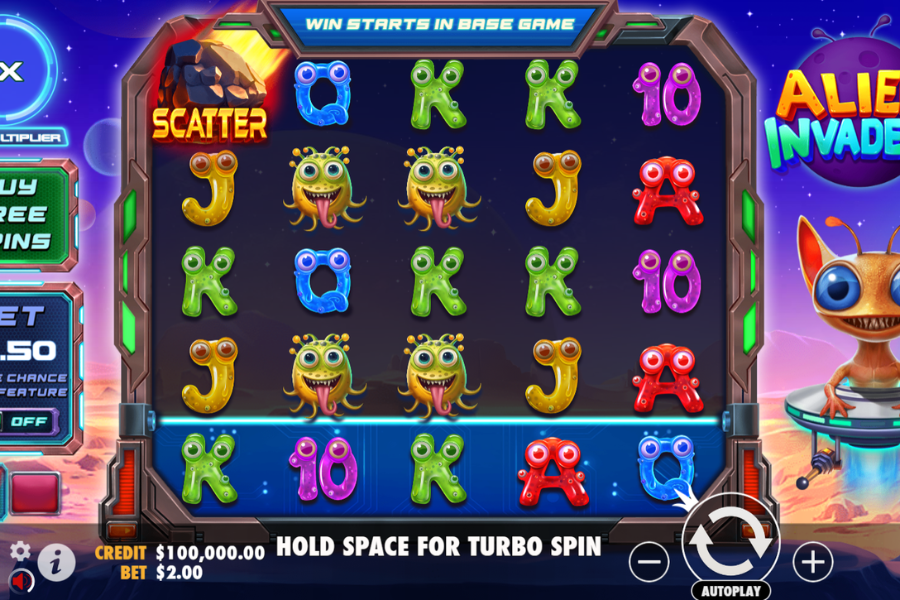 If the idea of colorful aliens, chain reactions, and turbo-charged win multipliers sounds like fun, Alien Invaders is ready to beam you up and take you out of this world. Pragmatic Play’s latest sweepstakes slot doesn’t follow a traditional format; instead, it’s built around explosive symbol drops, active reels, and even an escalating multiplier mechanic that feeds off destruction.