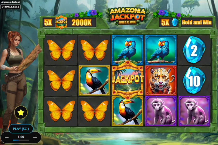 Gaming Corps has unleashed full jungle mode with Amazonia Jackpot Hold and Win. This hot new sweepstakes casino game is a bright, breezy slot packed with exotic animals, shimmering butterflies, and gemstone-powered wins. It even comes off as somewhat of a spinoff from Tomb Raider.