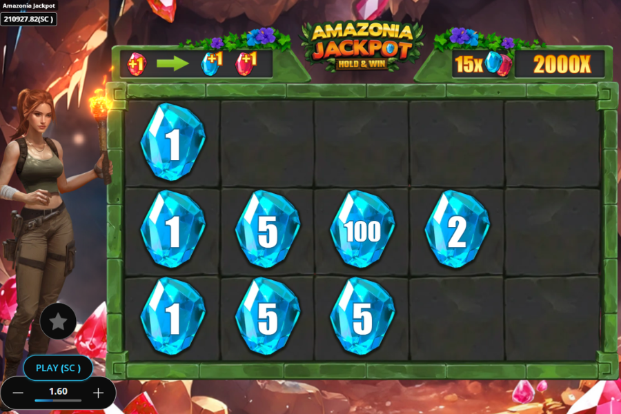 Once the feature is active, things move fast. You start with 3 re-spins, and only Diamond or Ruby Crystal symbols can land on the reels. Each new symbol resets the spin count to 3. This mechanic is well-known to any slot gamers who play Hold and Win games, but Amazonia Jackpot adds a clever twist.
