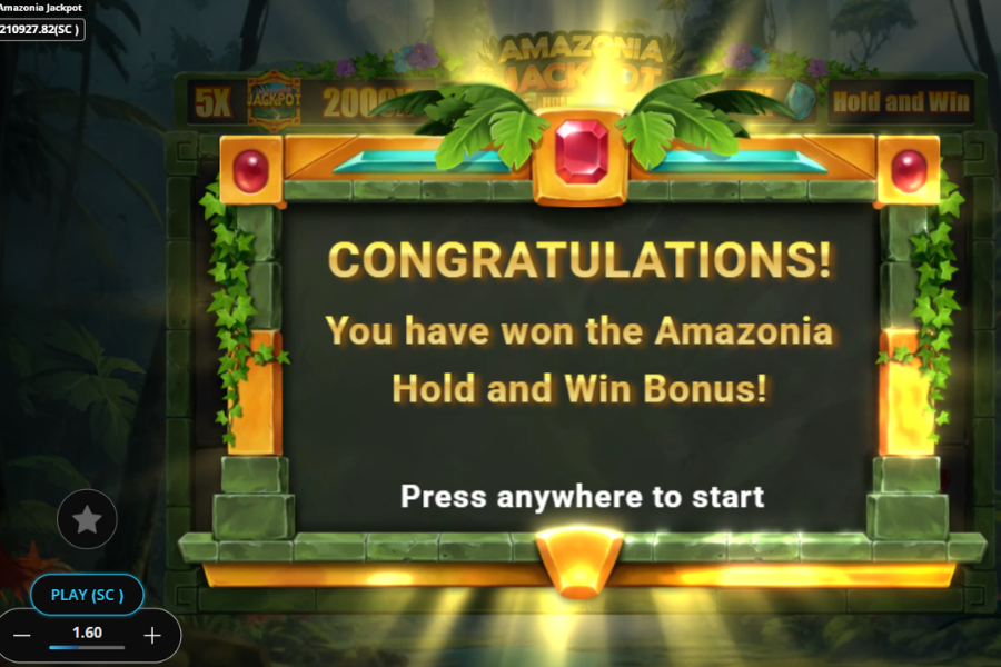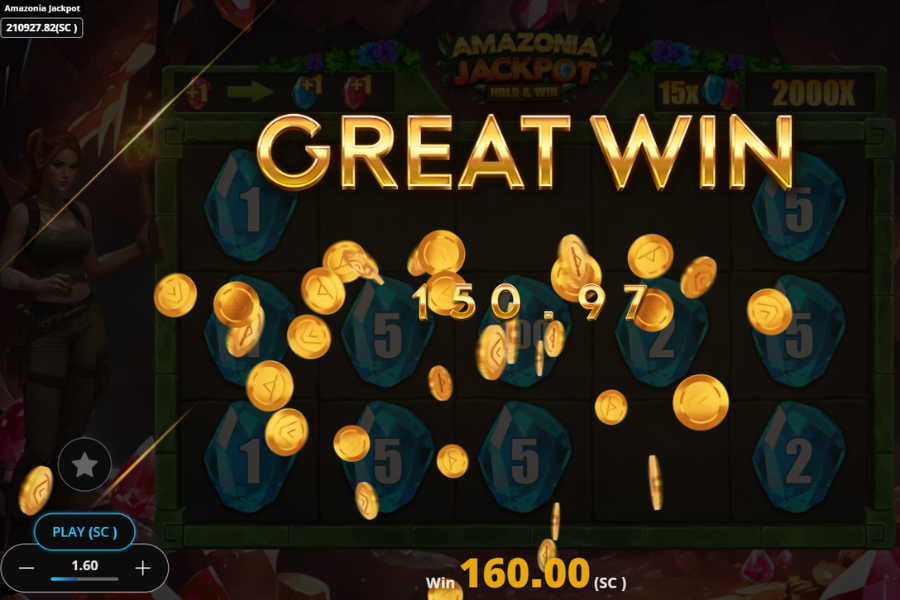 Amazonia Jackpot Hold and Win has a max win of 2000x, which isn’t the biggest on the market, but it goes well with the game’s steady, medium-high volatility. You can bet anywhere from 0.10 SC to 100 SC, with the bonus buy being 50x of whatever you’re betting. With a decent RTP of 94.17% in the base game and 94.22% in the bonus buy, these spins can be worth your time.