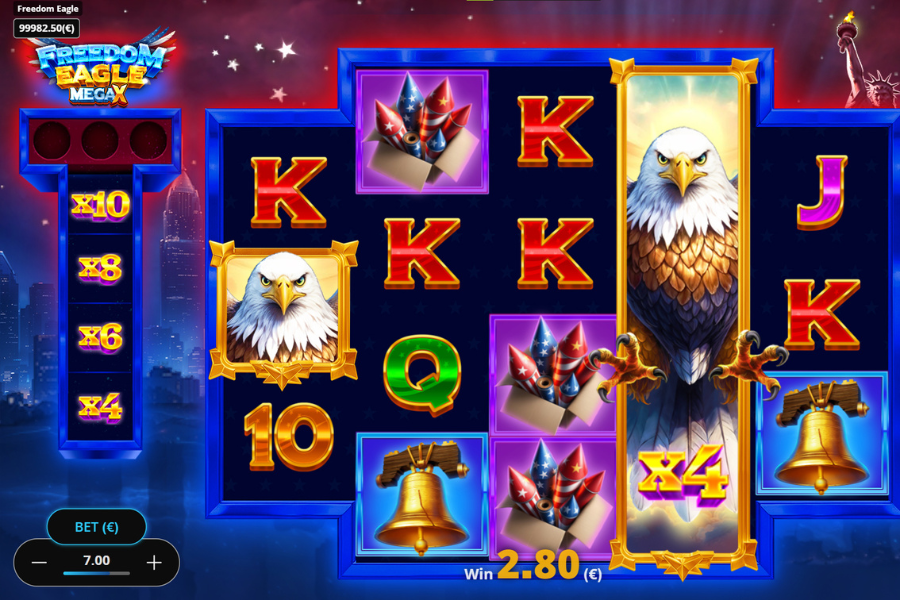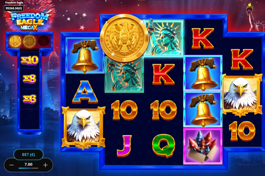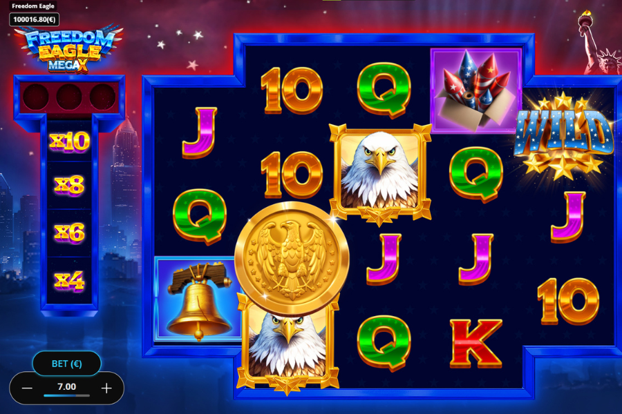 Freedom Eagle Mega X is a smart mix of simple base gameplay and explosive bonus mechanics and once you start spinning the reels, we think you’ll be hooked. The stacked Eagle multipliers offer some of the most satisfying win moments you’ll find in a slot right now. The progressive free spins format keeps the tension high as you chase bigger rewards with each Scatter collected.